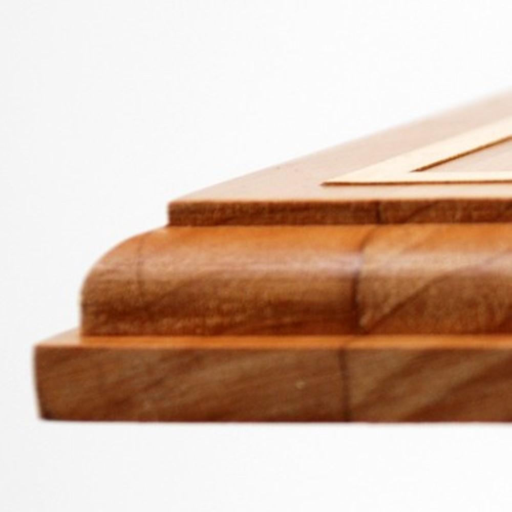 Plaque is made from solid, American Alder. The classic cove edge profile has a scalloped shape that frames the engraving. Each plaque is rectangular and includes key-hole slots on back allow for mounting horizontally or vertically.