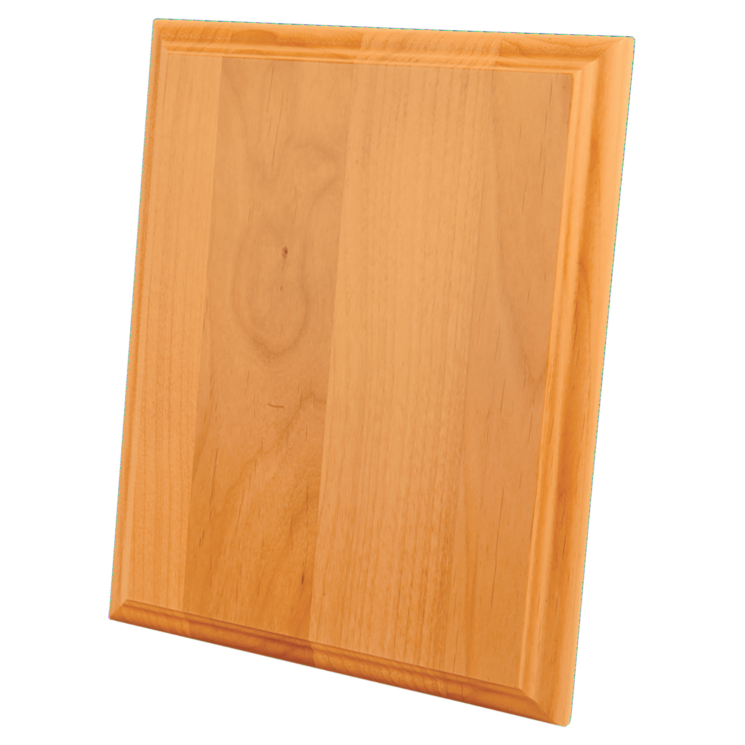 Plaque is made from solid, American Alder. The classic cove edge profile has a scalloped shape that frames the engraving. Each plaque is rectangular and includes key-hole slots on back allow for mounting horizontally or vertically.