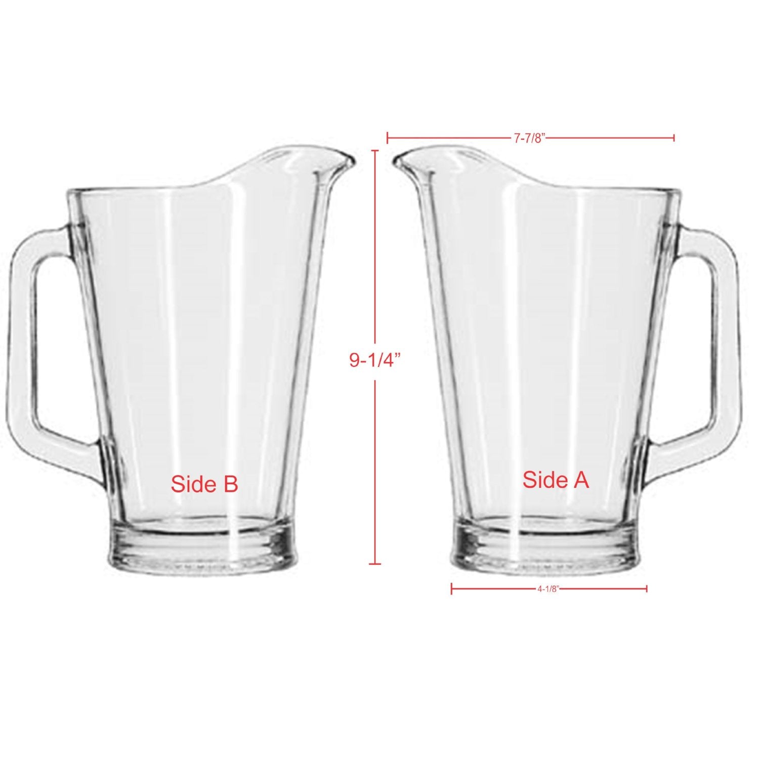 Made of thick, clear glass, this 60 oz pitcher is the perfect way to serve ice cold water, lemonade, iced tea, or beer. Its classic design is accented by a large, sturdy glass handle, making it perfect for everyday use. Additionally, its large lip helps you pour more accurately. Each pitcher is restaurant quality, lead free, and dishwasher safe.